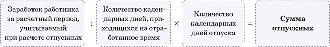 Если все 12 календарных месяцев сотрудник отработал полностью, для расчета отпускных используют такую формулу:
