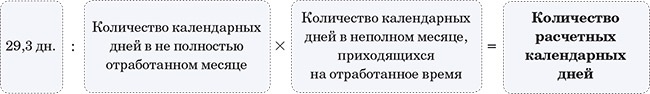 Предположим, один из месяцев расчетного периода ваш сотрудник отработал не полностью. Рассчитывая средний заработок, продолжительность неполного месяца определяют по следующей формуле: