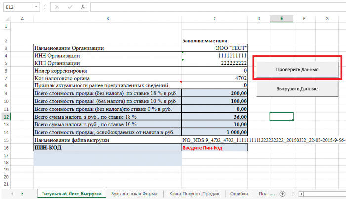 V. Проверка данных на ошибки. На титульном Листе нажимаем кнопку - "Проверить Данные"