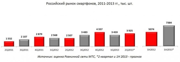 По итогам первого полугодия 2013 года на долю смартфонов