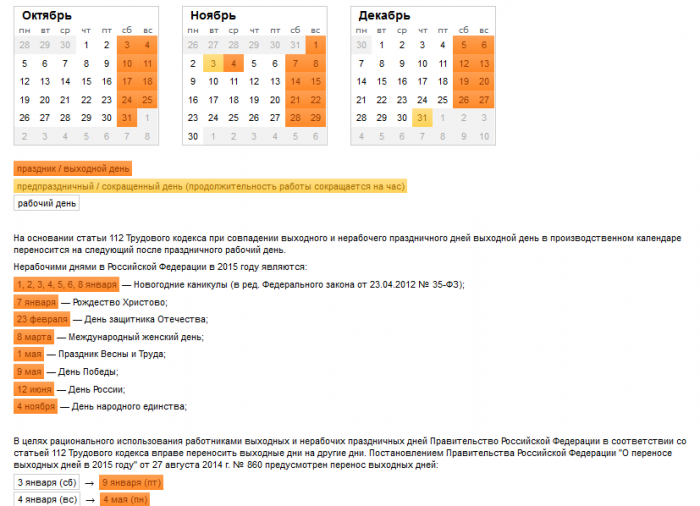 Нерабочими днями в Российской Федерации в 2015 году являются: